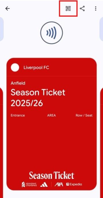 If you are using a rotating Google QR code, look for the QR code icon appears in the top-right corner of your phone. Tap the icon to open the QR code, then hold it in front of the white scanner at the bottom of the turnstile screen to scan.
