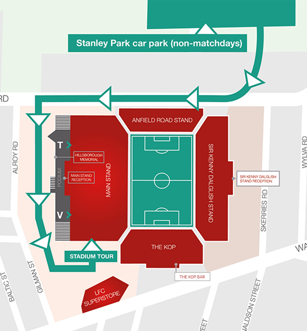 The Stadium Tours Reception is located in the Main Stand, opposite the club superstore.